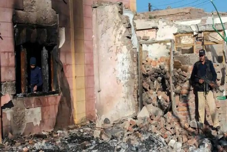 ക്ഷേത്രത്തിലെ പുനരുദ്ധാരണത്തിനായുള്ള ജോലികള് പുരോഗമിക്കവെ പ്രതിഷേധവുമായി എത്തിയ സംഘം ക്ഷേത്രം തകര്ക്കുകയും തീയിടുകയും ചെയ്തുവെന്ന് പ്രദേശവാസികള് പറഞ്ഞു. ജാമിയത്ത് ഉലെമ ഇസ്ലാം പാര്ട്ടിയാണ് ആക്രമണത്തിന് പിന്നിലെന്നാണ് പൊലീസ് പറയുന്നത്. പുനരുദ്ധാരണം നടന്ന ക്ഷേത്രത്തിന്റെ ഭാഗങ്ങളെല്ലാം ആക്രമണത്തില് പൂര്ണ്ണമായി തകര്ന്നിട്ടുണ്ട്.