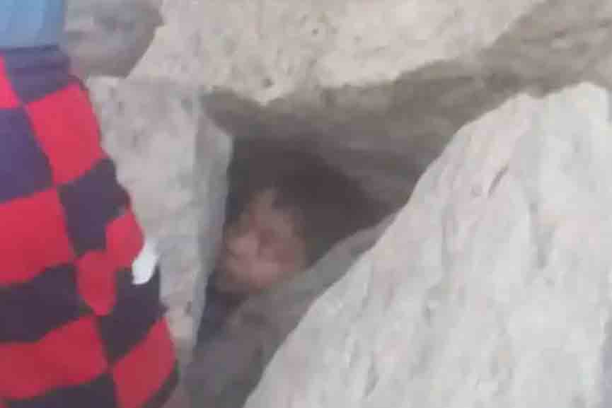 തുടർന്ന് അഗ്നിരക്ഷാ സേനയെ വിവരം അറിയിക്കുകയായിരുന്നു. വടകര സ്റ്റേഷൻ ഓഫിസർ കെ അരുണിന്റെ നേതൃത്വത്തിൽ എത്തിയ സംഘമാണ് രക്ഷാപ്രവർത്തനം നടത്തിയത്. ആദ്യം കല്ലുകൾ മാറ്റാൻ ശ്രമം നടത്തിയെങ്കിലും ചുറ്റുമുള്ള കല്ലുകൾ ഇളകിയാൽ അത് അപകടകരമാകും എന്നതിനാൽ തന്ത്രം മാറ്റി.