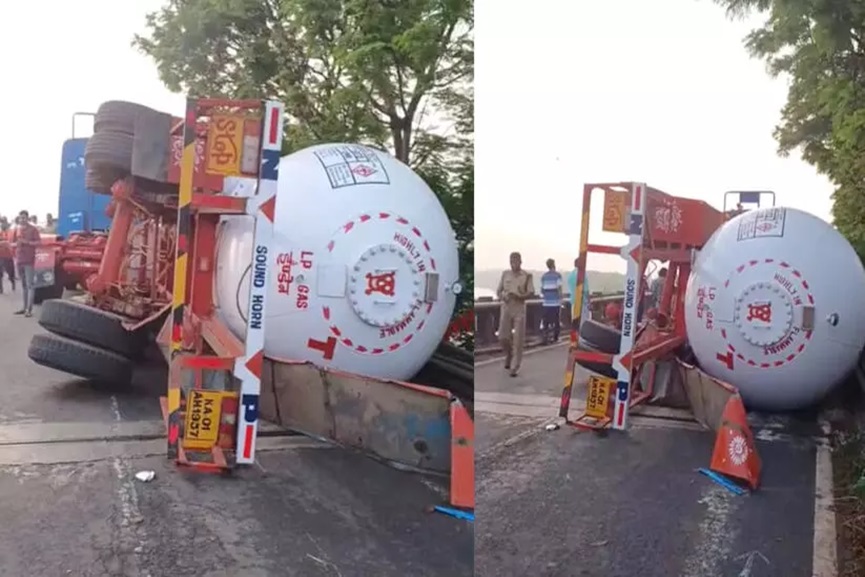 കണ്ണൂരിൽ ഗ്യാസ് ടാങ്കർ നിയന്ത്രണം വിട്ടു മറിഞ്ഞ് മൂന്ന് വാഹനങ്ങളിൽ ഇടിച്ചു