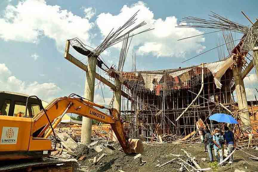 എന്നാൽ അത്തരമൊരു രേഖ കിട്ടില്ലെന്നതിനാല് തന്നെ അനുമതിയില്ലാതെ കമ്പനി നിർമാണം തുടങ്ങുകയായിരുന്നു. കെട്ടിടനിര്മാണം രണ്ടാം നിലയില് എത്തിയപ്പോഴായിരുന്നു ഒരു ഭാഗം തകര്ന്ന് വീണത്. പിന്നാലെ പഞ്ചായത്ത് സ്റ്റോപ് മെമ്മോയും നല്കി.