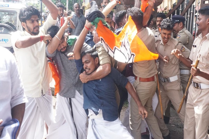 പ്രവർത്തകരെ ബലം പ്രയോഗിച്ചാണ് പോലീസ് നീക്കിയത്. ജില്ലാ കളക്ടറെ കണ്ട് സംസാരിച്ചതിന് ശേഷമേ മടങ്ങുകയുള്ളൂ എന്ന നിലപാടിലായിരുന്നു പ്രവർത്തകർ. കളക്ടർ സ്ഥാനത്ത് നിന്ന് മാറി അന്വേഷണം നേരിടണമെന്നാണ് പ്രതിഷേധക്കാരുടെ ആവശ്യം. യുവമോർച്ചയുടെ പ്രതിഷേധത്തിന് ശേഷമാണ് കെഎസ്യു പ്രതിഷേധം ഉണ്ടായത്.