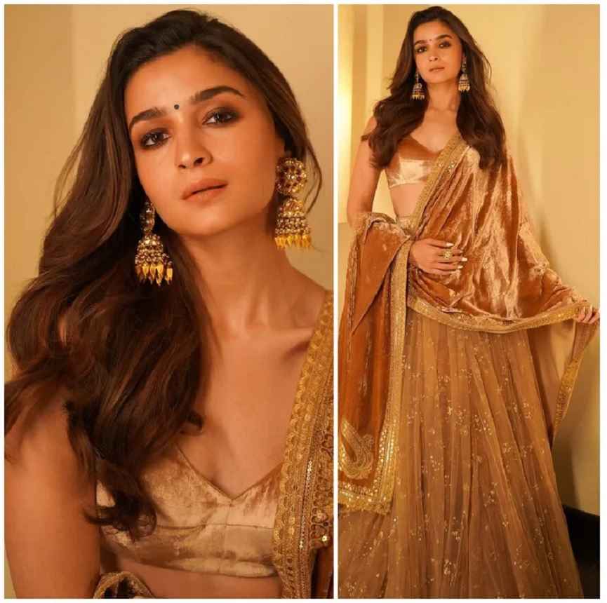 സെലിബ്രിറ്റി ഡിസൈനർ സബ്യസാചിയുടെ ലെഹങ്കയിൽ ആണ് ആലിയ ഇത്തവണ തിളങ്ങുന്നത്. തന്റെ പുതിയ സിനിമയായ ‘ആർആർആറി’ന്റെ പ്രചാരണത്തിനാണ് താരം ഗോൾഡൻ ലെഹങ്കയിൽ അതിസുന്ദരിയായി എത്തിയത്.