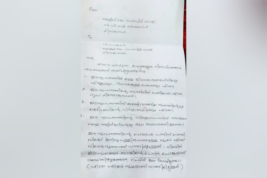 ആരോപണങ്ങളിൽ വിശദീകരണം ആവശ്യപ്പെട്ട് സിപിഐ ബാങ്കിന് കത്തയച്ചു. സ്ഥാപനത്തിന്റെ ഇടപാടുകള്, എത്രപേർ ജോലി ചെയ്യുന്നുണ്ട്, അവരുടെ ശമ്പളമെത്രയാണ് എന്നതുള്പ്പടെയുള്ള വിവരങ്ങള് തേടിയാണ് സിപിഐയുടെ കത്ത്. പതിനഞ്ച് ദിവസത്തിനുള്ളില് മറുപടി നല്കണമെന്നും നിർദ്ദേശമുണ്ട്.