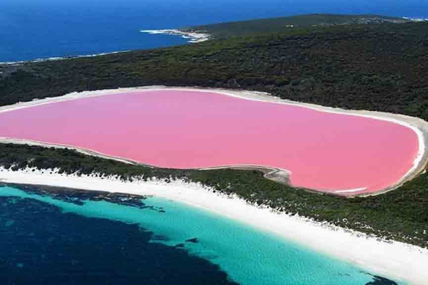 എന്നാൽ, ഓസ്ട്രേലിയയുടെ പടിഞ്ഞാറൻ ദ്വീപുകളിലൂടെ സഞ്ചരിക്കുന്ന ആർക്കും ഈ അവിശ്വസനീയമായ പ്രതിഭാസം സ്വന്തം കണ്ണുകൊണ്ട് കാണാൻ കഴിയും. പടിഞ്ഞാറന് ഓസ്ട്രേലിയൻ തീരത്തുള്ള 105 ദ്വീപുകളിലെ മിഡിൽ ഐലന്റിലാണ് ലെയ്ക് ഹില്ലിയർ എന്ന ഈ തടാകം സ്ഥിതി ചെയ്യുന്നത്. ഈ ചെറിയ തടാകത്തിന്റെ നീളം കേവലം 600 മീറ്റർ മാത്രമാണ്. 1802ല് ബ്രിട്ടീഷ് സഞ്ചാരിയായ മാത്യു ഫ്ലിന്റേഴ്സ് ആണ് പിങ്ക് തടാകത്തെ ആദ്യമായി പരിചയപ്പെടുത്തുന്നത്.പിങ്ക് നിറത്തിൽ നിറഞ്ഞു നിൽക്കുന്ന തടാകം ഏവർക്കും ഒരു അൽഭുതമാണ്. എന്നാൽ ഈ അൽഭുത തടാകത്തിന്റെ നിറത്തിന് പിന്നിലെ രഹസ്യം ഇന്നും ചുരുളഴിഞ്ഞിട്ടില്ല. തടാകത്തിലെ വെള്ളത്തിൽ അടങ്ങിയിരിക്കുന്ന ഉപ്പിന്റെ അളവാകാം ഒരുപക്ഷെ ഈ നിറവ്യത്യാസത്തിന് കാരണം എന്നൊരു ഊഹം മാത്രമാണ് ഇപ്പോൾ ഉള്ളത്, അതിൽ വ്യക്തത വന്നിട്ടില്ല.