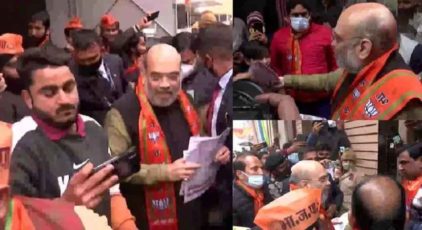 ഗൗതം ബുദ്ധനഗറിലെ ദാദ്രി, ബ്രാജ് മേഖലയിൽ ബിജെപി സ്ഥാനാർഥികള്ക്കു വേണ്ടി അമിത് ഷാ കഴിഞ്ഞ ദിവസങ്ങളിൽ വീടുകൾതോറും കയറിയിറങ്ങി പ്രചാരണം നടത്തിയിരുന്നു. ഇതിന്റെ ചിത്രങ്ങളും സമൂഹ മാദ്ധ്യമങ്ങളിൽ അദ്ദേഹം പങ്കുവച്ചിരുന്നു. നിരവധി ആളുകൾക്കൊപ്പം നിൽക്കുന്ന അമിത്ഷാ ഒരു ചിത്രത്തിലും മാസ്ക് ധരിച്ചിട്ടില്ല.