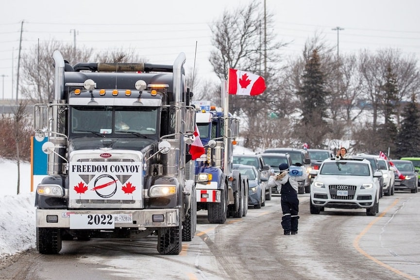 രാജ്യത്ത് 90 ശതമാനം പേരും വാക്സിൻ സ്വീകരിച്ചെന്നും അതിനാൽ യുഎസിനും കാനഡക്കുമിടയിൽ സഞ്ചരിക്കുന്ന ട്രക്ക് ഡ്രൈവർമാർ നിർബന്ധമായും വാക്സിൻ എടുക്കണമെന്ന കനേഡിയൻ പ്രധാനമന്ത്രി ജസ്റ്റിൻ ട്രൂഡോയുടെ ഉത്തരവിനെതിരായാണ് ട്രക്ക് ഡ്രൈവർമാരും മറ്റ് സമരക്കാരും ഇപ്പോൾ വാഹന വ്യൂഹവുമായി തലസ്ഥാനം ലക്ഷ്യമാക്കി നീങ്ങുന്നത്. ജനുവരി 23ന് വാൻകൂവറിൽ നിന്നാണ് രാജ്യത്തിന്റെ വിവിധഭാഗങ്ങളിൽ നിന്നെത്തിയ ട്രക്കുകൾ പ്രതിഷേധയാത്ര പുറപ്പെട്ടത്.