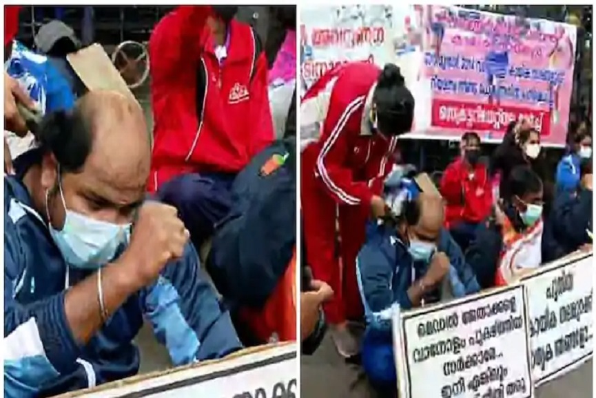 തിരുവനന്തപുരം: അർഹതപ്പെട്ട സർക്കാർ ജോലി നൽകണമെന്ന് ആവശ്യപ്പെട്ട് സെക്രട്ടറിയേറ്റിന് മുന്നിൽ സമരം ചെയ്യുന്ന കായിക താരങ്ങൾ തലമുണ്ഡനം ചെയ്ത് പ്രതിഷേധിച്ചു. കേരളത്തിനായി ദേശീയ മൽസരങ്ങളിൽ അടക്കം പങ്കെടുത്ത 71ഓളം കായിക താരങ്ങൾ കഴിഞ്ഞ എട്ട് ദിവസമായി സെക്രട്ടറിയേറ്റിന് മുന്നിൽ സമരത്തിലാണ്.