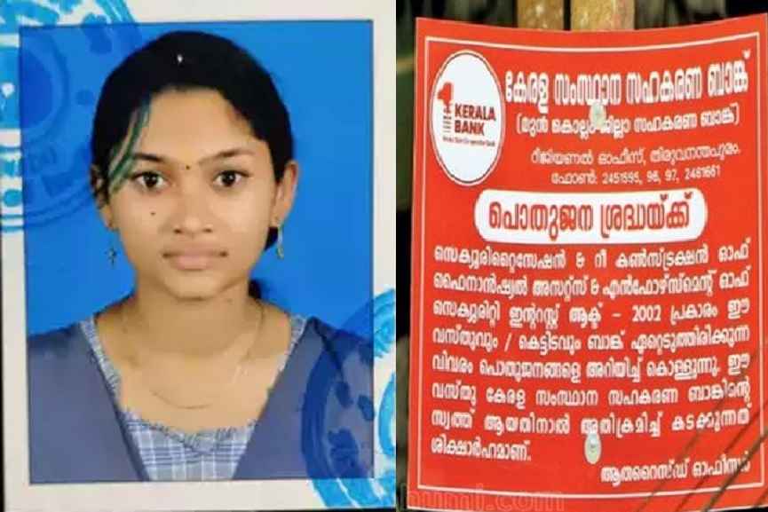 അതേസമയം; അഭിരാമി (20) ആത്മഹത്യ ചെയ്തസംഭവത്തിൽ റിപ്പോർട്ട് ആവശ്യപ്പെട്ടതായി സഹകരണമന്ത്രി വിഎൻവാസവൻ പറഞ്ഞു. കേന്ദ്രത്തിന്റെ സർഫാസി നിയമപ്രകാരമാണു ജപ്തി നടപടികൾ നടക്കുന്നത്. ഈ നിയമത്തെ സംസ്ഥാന സർക്കാർ അനുകൂലിക്കുന്നില്ലെന്നും മന്ത്രി പറഞ്ഞു. എന്നാൽ, കേരള ബാങ്ക് അധികൃതർ അഭിരാമിയുടെ വീടിനു മുന്നിൽ ജപ്തി ബോർഡ് സ്ഥാപിച്ചതിനെക്കുറിച്ചുള്ള ചോദ്യത്തിൽ നിന്ന് മന്ത്രി ഒഴിഞ്ഞുമാറുകയാണ് ചെയ്തത്.