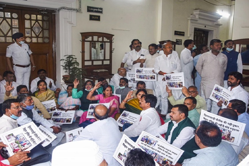 ബിഹാര് മിലിറ്ററി പോലീസിനെ കൂടുതൽ ശക്തിപ്പെടുത്തുന്നതിനായി കൊണ്ടുവന്ന പുതിയ സായുധ പോലീസ് ബില്ലിനെ ചൊല്ലിയാണ് സംഘർഷം ഉണ്ടായത്. ബിഹാര് പ്രത്യേക സായുധ പൊലീസ് നിയമം കരിനിയമം ആണെന്നും പിൻവലിക്കണം എന്നും പ്രതിപക്ഷം ആവശ്യപ്പെട്ടു. സ്പീക്കറുടെ ചേംബറിന് മുന്നില് കുത്തിയിരുന്ന് പ്രതിഷേധിച്ച എംഎല്എമാരെ പട്ന എസ്എസ്പി ഉപേന്ദ്ര കുമാർ ശർമ ബലംപ്രയോഗിച്ച് മാറ്റാന് ശ്രമിക്കുകയായിരുന്നു. പിൻമാറാൻ തയ്യാറാകാതെ ഇരുന്നതിനെ തുടർന്നാണ് എംഎൽഎമാരെ മർദ്ദിച്ചത്.