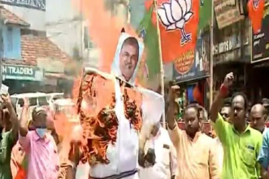 പിഴുതെടുത്ത സിൽവർ ലൈൻ സർവേ കല്ലുമായാണ് പ്രവർത്തകർ പ്രതിഷേധത്തിന് എത്തിയത്. പ്രവർത്തകർ മന്ത്രിയുടെ കോലം കത്തിക്കുകയും ചെയ്തിരുന്നു. ബോധപൂര്വം കലാപമുണ്ടാക്കാനുള്ള ശ്രമമാണ് ചെങ്ങന്നൂരിലുള്പ്പെടെ കാണുന്നതെന്നും കെ-റെയില് കല്ലിളക്കിയാല് വിവരമറിയുമെന്നും മന്ത്രി ആലപ്പുഴയില് പറഞ്ഞിരുന്നു. തീവ്രവാദ സംഘടനകളുടെ സഹായത്തോടെ ആളുകളെ ഇളക്കി വിടുകയാണ് ചെയ്യുന്നത്. ഒരു കിലോമീറ്റര് അപ്പുറവും ഇപ്പറവും ബഫര് സോണ് ആണെന്നാണ് പറയുന്നത്. അങ്ങനെ ഒരു സംഭവമേ ഇല്ലെന്നും മന്ത്രി കൂട്ടിച്ചേര്ത്തു.