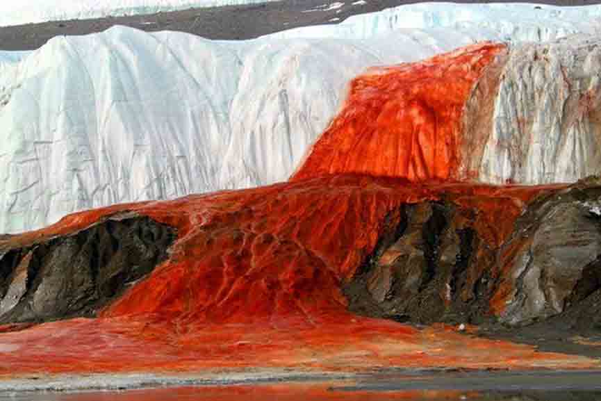പ്രകൃതി ഒരുക്കിയ അൽഭുത കാഴ്‌ചകൾ നിരവധിയാണ്. അതിലൊന്നാണ് അന്റാര്‍ട്ടിക്കയിലെ ടെയ്‌ലർ ഹിമാനി പ്രദേശത്തിലെ ‘രക്‌തം’ ഒലിച്ചിറങ്ങുന്ന വെള്ളച്ചാട്ടം. ഹിമാനി പ്രദേശത്ത് എത്തുന്ന ഏവരുടെയും ശ്രദ്ധ ആകര്‍ഷിക്കുന്നതും അതേസമയം അൽപം നോവു പകരുന്നതുമായ കാഴ്‌ചയായിരുന്നു ഹിമാനിയില്‍ നിന്ന് ഒലിച്ചിറങ്ങുന്ന ‘രക്‌തം’. ബ്ളഡ് ഫാള്‍സ് എന്നായിരുന്നു ഗവേഷകര്‍ വെള്ളച്ചാട്ടത്തിന് നല്‍കിയ പേര്. പക്ഷേ ആ കാഴ്‌ചയുടെ രഹസ്യം അന്വേഷിച്ചവര്‍ക്കൊന്നും യഥാർഥ കാരണം കണ്ടുപിടിക്കാന്‍ കഴിഞ്ഞിരുന്നില്ല.