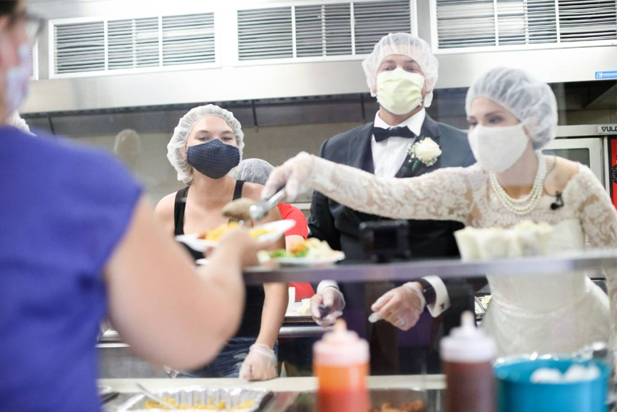ഓഗസ്റ്റ് 15 ന് കുടുംബാംഗങ്ങളും ഉറ്റസുഹൃത്തുക്കളും മാത്രം പങ്കെടുത്ത വിവാഹ ചടങ്ങിനു ശേഷം, ദമ്പതികൾ നേരെ പോയത് കാറ്ററിങ് കമ്പനിയിലേക്കാണ്. മുഖാവരണവും ഗ്ലൗസുമണിഞ്ഞ് ദമ്പതികൾ കൗണ്ടറിൽ നിന്ന് ഭക്ഷണം വിളമ്പി നൽകി. തങ്ങളുടെ വിവാഹ ദിനത്തിലെ ഏറ്റവും മൂല്യവത്തായ കാര്യം തങ്ങളുടെ കൈകൊണ്ടു വിളമ്പിയ ഭക്ഷണം കഴിച്ചപ്പോൾ മറ്റുള്ളവരുടെ മുഖത്തുണ്ടായ ചിരിയാണെന്ന് ദമ്പതികൾ പറഞ്ഞു.