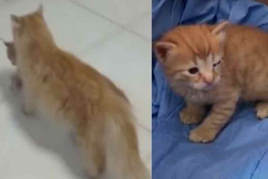 അതിന്റെ കണ്ണ് അടഞ്ഞിരിക്കുന്നത് കണ്ട് ആശുപത്രിയിലുള്ളവര് മൃഗഡോക്ടറെ സമീപിച്ചു. കണ്ണിൽ അണുബാധയേറ്റതിനെ തുടർന്ന് പൂച്ചക്കുഞ്ഞിന്റെ കണ്ണ് അടഞ്ഞു കിടക്കുകയായിരുന്നു. തുടർന്ന് മരുന്നൊഴിച്ചു കൊടുത്ത് കുറച്ചു നേരത്തിനകം പൂച്ചക്കുഞ്ഞ് കണ്ണ് തുറന്നു.