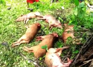 കൂടരഞ്ഞിയിൽ വെള്ളക്കെട്ടിൽ വീണ ആറ് കാട്ടുപന്നികളെ വെടിവെച്ചു കൊന്നു