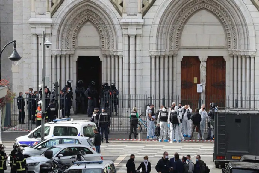 പാരീസ്: ഫ്രാന്സിലെ പള്ളിയില് കത്തിയുമായി കടന്നു കയറിയ ഒരാള് നടത്തിയ ആക്രമണത്തില് മൂന്ന് പേര് കൊല്ലപ്പെട്ടു. നൈസ് നഗരത്തിലെ നോത്രേ ദാം പള്ളിയിലാണ് ആക്രമണം നടന്നത്. തീവ്രവാദ ആക്രമണമാണ് നടന്നതെന്ന് നൈസ് മേയര് ക്രിസ്ത്യൻ എസ്ട്രോസി പറഞ്ഞു. കൊല്ലപ്പെട്ടവരില് ഒരു സ്ത്രീയുടെ തലയറുത്ത നിലയിലാണ് കണ്ടെത്തിയത്. അധ്യാപകന്റെ തലയറുത്തതിന് സമാനമായാണ് അക്രമണമെന്നും അല്ലാഹു അക്ബര് എന്ന് ഉച്ചരിച്ചുകൊണ്ടാണ് അക്രമി എത്തിയതെന്നും മേയര് പറഞ്ഞു. ആക്രമണത്തിന്റെ പശ്ചാത്തലത്തില് ഫ്രഞ്ച് പ്രസിഡണ്ട് ഇമ്മാനുവേല് മാക്രോണ് സംഭവ സ്ഥലം സന്ദര്ശിക്കും