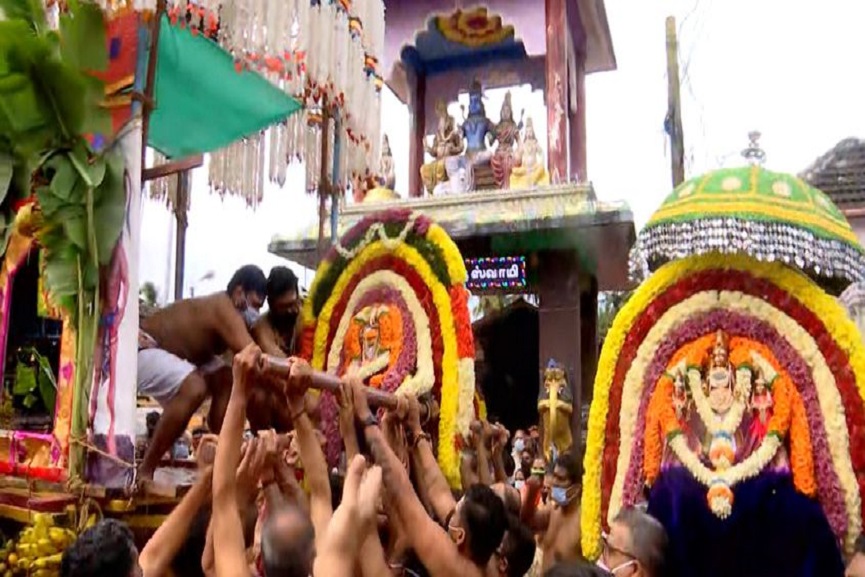 പാലക്കാട്: കൽപ്പാത്തി രഥോൽസവത്തിന് ഭക്തിസാന്ദ്രമായ തുടക്കം. കൽപ്പാത്തി വിശാലാക്ഷി സമേത വിശ്വനാഥ സ്വാമി ക്ഷേത്രത്തിൽ ഇന്ന് രാവിലെ പത്ത് മണിയോടെയാണ് ചടങ്ങുകൾ തുടങ്ങിയത്. കോവിഡ് മാനദണ്ഡങ്ങൾ പാലിച്ച് രഥപ്രയാണത്തിൽ ഗ്രാമവാസികൾ മാത്രമാണ് പങ്കെടുത്തത്. രഥപ്രയാണത്തിന് നേടിയ അനുമതി അതേമട്ടിൽ പാലിച്ച് വിശ്വാസികളും ചടങ്ങിന്റെ ഭാഗമായി.