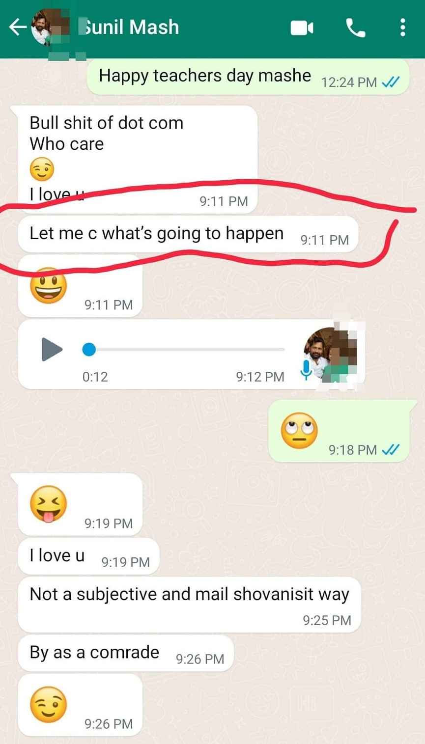 ഒരു അധ്യാപക ദിനാശംസകള് കൊടുത്തതാണ്. അധ്യാപകനാണല്ലോ വഴികാട്ടി തരണമല്ലോ… എന്റെ റിസേര്ച്ച് ഗൈഡുമായിരുന്നു. പിന്നെ ഒരു കൊണമുണ്ട് രാവിലത്തെ സോറിക്ക്.. മദ്യപിച്ചിരുന്നു എന്നുള്ള ന്യായീകരണം വന്നിരുന്നു. സ്ഥിരം ലൈസന്സ്.