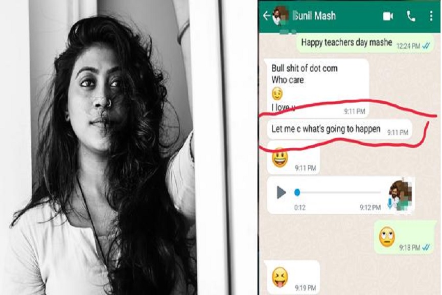 ഫേസ്ബുക്കില് പങ്കുവെച്ച കുറിപ്പിലാണ് ദിവ്യ അധ്യാപകനെതിരെ രംഗത്തെത്തിയത്. കഴിഞ്ഞ അധ്യാപക ദിനത്തില് ആശംസകള് അറിയിച്ചുകൊണ്ട് വാട്സ്ആപ്പില് സന്ദേശം അയച്ചപ്പോഴായിരുന്നു സുനില് കുമാര് മോശമായ രീതിയില് തന്നോട് സംസാരിച്ചതെന്ന് ദിവ്യ ഉഷ ഫേസ്ബുക്ക് കുറിപ്പില് പറഞ്ഞു. വാട്സ്ആപ്പ് ചാറ്റിന്റെ സ്ക്രീന് ഷോട്ട് അടക്കം ദിവ്യ ഗോപിനാഥ് പങ്കുവെച്ചിട്ടുണ്ട്.