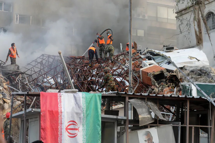 ഡമാസ്കസിലെ മെസ ജില്ലയിലാണ് ഇന്നലെ ആക്രമണം നടന്നത്. ഇറാൻ എംബസി ഉൾപ്പെടുന്ന മേഖലയിൽ ഇസ്രയേൽ യുദ്ധവിമാനങ്ങൾ ആറ് മിസൈലുകൾ വർഷിച്ചതായാണ് വിവരം. എഫ് –35 യുദ്ധവിമാനങ്ങൾ ഉപയോഗിച്ചാണ് ആക്രമണം നടത്തിയതെന്ന് ഇറാൻ പറഞ്ഞു. മൂന്ന് സീനിയർ കമാൻഡർമാരും കൊല്ലപ്പെട്ടവരിൽ ഉൾപ്പെടുന്നുണ്ട്. സിറിയൻ വിദേശകാര്യ മന്ത്രി ഫൈസൽ മേഗ്ദാദ് ആക്രമണത്തെ കടുത്ത ഭാഷയിൽ അപലപിച്ചു.