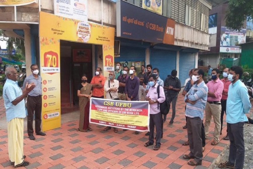 ഇന്ത്യൻ ബാങ്ക്സ് അസോസിയേഷനും ജീവനക്കാരുടെ ഐക്യവേദിയും തമ്മിൽ ഒപ്പിട്ട, 2017 മുതൽ പ്രാബല്യത്തിൽ വരേണ്ട പതിനൊന്നാം ഉഭയകക്ഷി കരാർ പ്രകാരമുള്ള ശമ്പള വർധനവ് ജീവനക്കാർക്ക് നൽകുന്നില്ലെന്നും അന്യായമായ ചാർജ് ഷീറ്റുകൾ നൽകി മാനേജ്മെന്റ് ജീവനക്കാരെ ദ്രോഹിക്കുകയും ചെയ്യുകയാണെന്ന് സിഎസ്ബി യുഎഫ്ബിയു ചൂണ്ടിക്കാട്ടി.