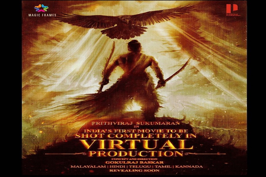 ഇന്ത്യയില് വിര്ച്വല് പ്രൊഡക്ഷന് വഴി പൂര്ണ്ണമായും ചിത്രീകരിക്കുന്ന ആദ്യ സിനിമയില് നായകനാകാനുള്ള തയ്യാറെടുപ്പിലാണ് മലയാള സിനിമയുടെ പ്രിയ നായകന് പൃഥ്വിരാജ്. ‘സിനിമാ നിര്മാണത്തിന്റെ കലയിലും ശാസ്ത്രത്തിലും ഇതൊരു പുതിയ അദ്ധ്യായം ആയിരിക്കും; മാറുന്ന കാലം, പുതിയ വെല്ലുവിളികള്, നൂതന രീതികള്, പറയാന് ഒരു ഇതിഹാസ കഥ’ എന്ന അടിക്കുറിപ്പോടെ സിനിമയുടെ പ്രഖ്യാപന പോസ്റ്റര് ഇന്സ്റ്റഗ്രാമിലൂടെ താരം പങ്കുവെച്ചിരുന്നു. പൃഥ്വിരാജ് പ്രൊഡക്ഷന്സും മാജിക് ഫ്രെയിംസും ചേര്ന്ന് നിര്മിക്കുന്ന ചിത്രത്തിന്റെ സംവിധാനവും തിരക്കഥയും നിര്വഹിക്കുന്നത് ഹോളിവുഡ് സിനിമകള്ക്കുള്പ്പെടെ വിര്ച്വല് രംഗങ്ങള് ഒരുക്കുന്ന ഗോകുല്രാജ് ഭാസ്കര് ആണ്. സിനിമയുടെ പേരോ മറ്റ് വിശദാംശങ്ങളോ പുറത്തുവിട്ടിട്ടില്ല. മലയാളം, ഹിന്ദി, തെലുങ്ക്, തമിഴ്, കന്നഡ എന്നീ അഞ്ച് ഭാഷകളില് സിനിമ പുറത്തിറങ്ങും. എല്ലാ ഭാഷയിലും സിനിമക്ക് ഒരേ പേര് തന്നെ വേണമെന്നതിനാല് ഫിലിം ചേംബറിന്റെ അംഗീകാരം ലഭിച്ചതിന് ശേഷം മാത്രമേ പ്രഖ്യാപിക്കുകയുള്ളൂ