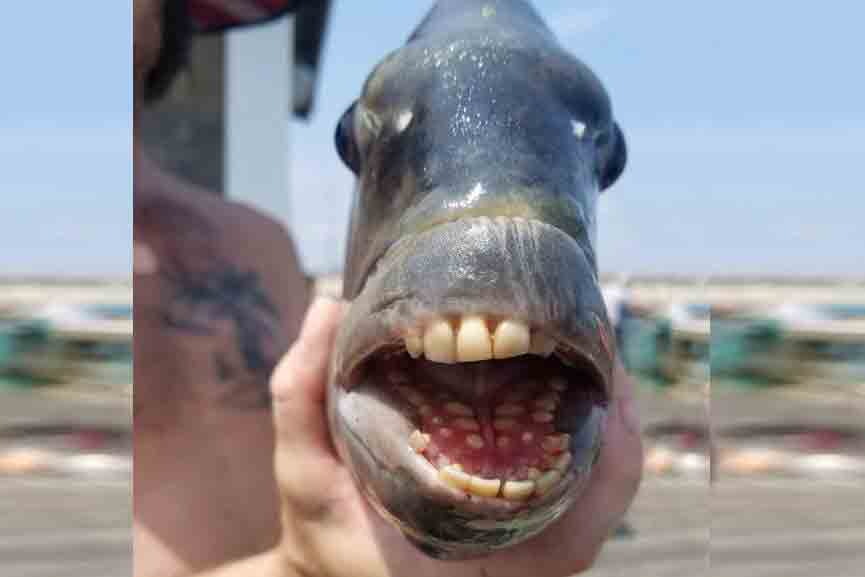 ജിന്നേറ്റ്സ് പിയർ (Jennette’s Pier) എന്ന ഫേസ്ബുക്ക് പേജിൽ മൽസ്യ തൊഴിലാളിയായ നഥാൻ മാർട്ടിൻ ആണ് താൻ പിടിച്ച വായ് നിറച്ച് പല്ലുകളുള്ള മീനിന്റെ ചിത്രം പങ്കുവച്ചത്. ഷീപ്ഷെഡ് വിഭാഗത്തിൽപെട്ട മീനാണ് താരം.