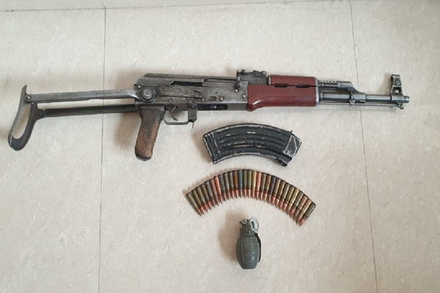 എകെ -56 റൈഫിള്, എകെ -56 മാഗസിന്, 28 എകെ -56 റൗണ്ടുകള്, ഹാന്ഡ് ഗ്രനേഡ് എന്നിവയാണ് പോലീസ് കണ്ടെടുത്തത്.