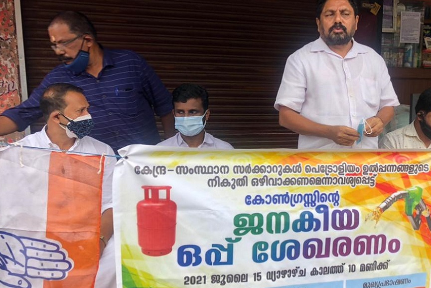 ജനജീവിതം ഗുരുതര പ്രതിസന്ധിയിലായ കോവിഡ് കാലഘട്ടത്തിൽ പെട്രോളിയം ഉൾപ്പന്നങ്ങൾക്ക് അമിതമായ നികുതി ചുമത്തി വില വർധിപ്പിച്ചത് ജനങ്ങളെ കൊള്ളയടിക്കുന്നതിന് തുല്യമാണെന്നും നികുതി കുറച്ച് മോദി–പിണറായി സർക്കാറുകൾ ജനങ്ങൾക്ക് ആശ്വാസം പകരണമെന്നും ടികെ അഷറഫ് ആവശ്യപ്പെട്ടു. രാജ്യത്ത് പെട്രോൾ വില 100ഉം കടന്ന സാഹചര്യത്തിലായിരുന്നു കോൺഗ്രസ് മണ്ഡലം കമ്മിറ്റിയുടെ പ്രതിഷേധം.