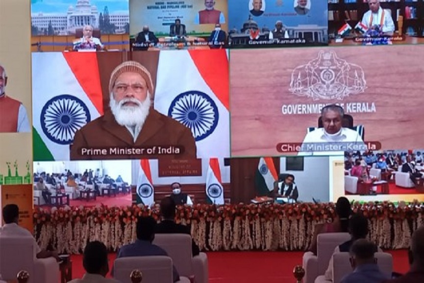 കൊച്ചി: സംസ്ഥാനത്തിന്റെ അഭിമാന പദ്ധതിയായ കൊച്ചി-മംഗലാപുരം പ്രകൃതിവാതക പൈപ്പ് ലൈന് പദ്ധതി പ്രധാനമന്ത്രി നരേന്ദ്രമോദി നാടിന് സമര്പ്പിച്ചു. വീഡിയോ കോണ്ഫറന്സ് വഴി നടന്ന ചടങ്ങിലായിരുന്നു ഉല്ഘാടന ചടങ്ങ്.