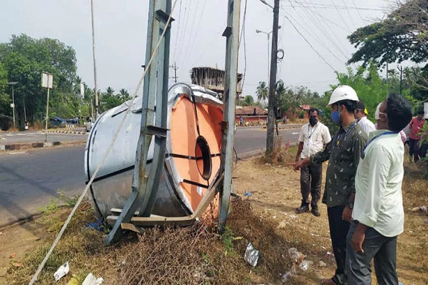 24 ടണ്ണും 10 ടണ്ണും ഭാരമുള്ള രണ്ട് കോയിലുകളാണ് റോഡിലേക്ക് തെറിച്ചു വീണത്. ഉരുണ്ട് നീങ്ങിയ രണ്ട് കോയിലുകളും സമീപത്തെ എച്ച്ടി വൈദ്യുത തൂണിൽ ഇടിച്ചാണ് നിന്നത്. ഇടിയുടെ ആഘാതത്തിൽ തൂണുകൾ ഇടിഞ്ഞു തൂങ്ങി. കെഎസ്ടിപി പാതയിൽ നിന്ന് ദേശീയ പാതയിലേക്ക് പ്രവേശിക്കുന്ന സ്ഥലത്തെ റോഡ് നിർമാണത്തിലെ അപാകതയാണ് അപകട കാരണമെന്നാണ് വിലയിരുത്തൽ.