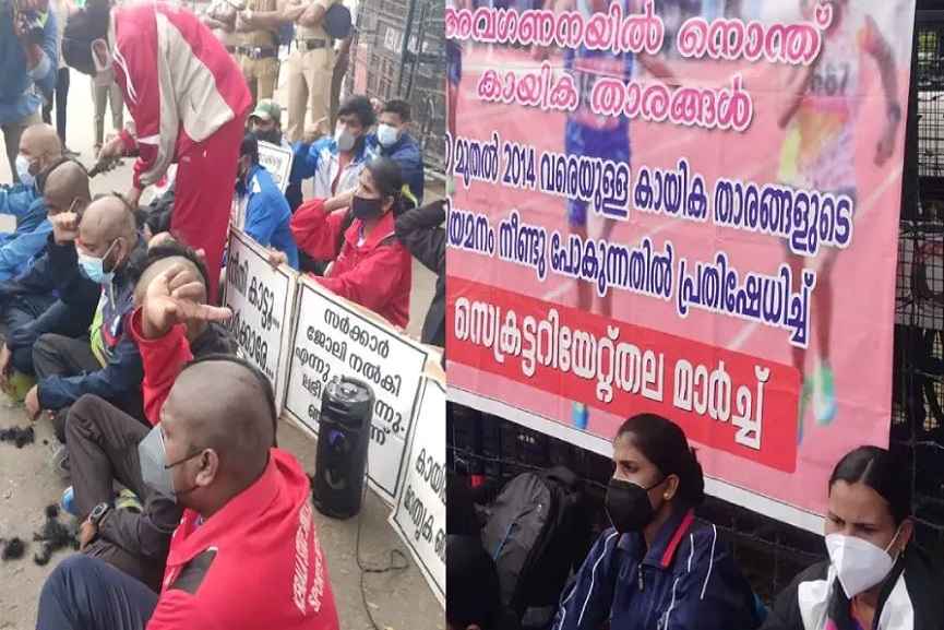 കേരളത്തിനായി ദേശീയ മൽസരങ്ങളിൽ അടക്കം പങ്കെടുത്ത 71ഓളം കായിക താരങ്ങളാണ് അർഹതപ്പെട്ട ജോലി നൽകണമെന്ന ആവശ്യവുമായി സെക്രട്ടറിയേറ്റിന് മുന്നിൽ സമരം ചെയ്യുന്നത്. നേരത്തെ തല പാതി മൊട്ടയടിച്ചും ഇവർ പ്രതിഷേധിച്ചിരുന്നു. എന്നിട്ടും അനുകൂലമായ സമീപനം സർക്കാരിന്റെ ഭാഗത്ത് നിന്ന് ഉണ്ടായിരുന്നില്ല. തുടർന്നാണ് കായിക താരങ്ങൾ പ്രതിഷേധം കടുപ്പിച്ചത്.