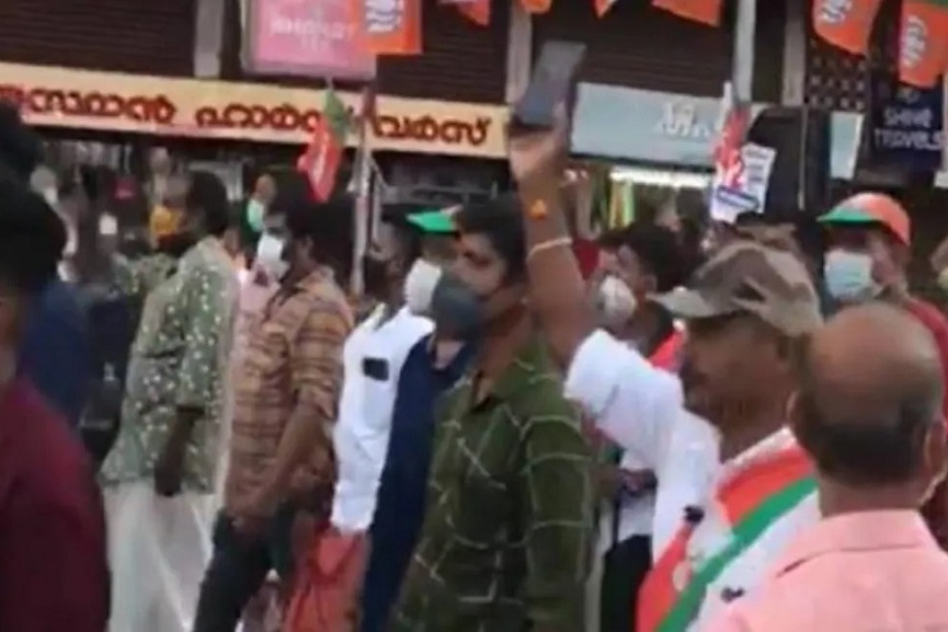 തലശ്ശേരി: മതവിദ്വേഷ മുദ്രാവാക്യം മുഴക്കി തലശ്ശേരിയിൽ പ്രകടനം നടത്തിയ സംഭവത്തിൽ നാല് ബിജെപി പ്രവർത്തകർ റിമാൻഡിൽ. കെടി ജയകൃഷ്ണൻ ദിനത്തോട് അനുബന്ധിച്ച് തലശ്ശേരി നഗരത്തിൽ മതവിദ്വേഷ പ്രകടനം നടത്തിയ നാല് പേരാണ് അറസ്റ്റിലായത്. ജാമ്യമില്ലാ വകുപ്പുകൾ ചുമത്തിയാണ് പോലീസ് കേസെടുത്തത്. വാഴയിൽ വീട്ടിൽ ഷിജിൽ, കണ്ണവം സ്വദേശികളായ കൊട്ടണ്ണേൽ ആർ രജിത്ത്, വിവി ശരത്ത്, ശിവപുരം ശ്രീജാലയത്തിൽ ശ്രീരാഗ് എന്നിവരാണ് റിമാൻഡിലായത്.