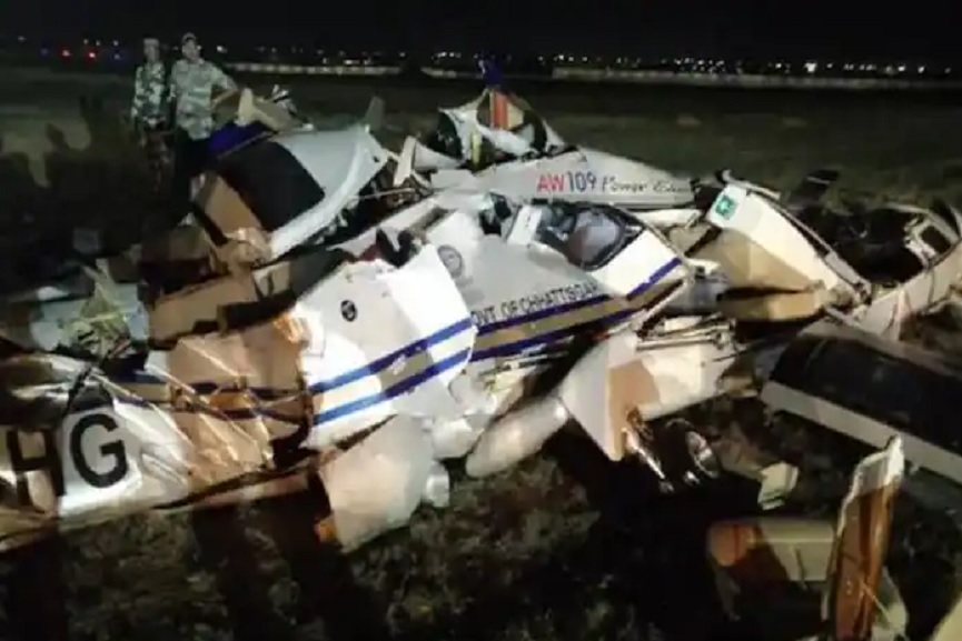 മന പോലീസ് സ്റ്റേഷൻ പരിധിയിൽ റായ്പൂരിലെ സ്വാമി വിവേകാനന്ദ വിമാനത്താവളത്തിൽ രാത്രി ഒമ്പതോടെയാണ് സംഭവം നടന്നതെന്ന് സീനിയർ പൊലീസ് സൂപ്രണ്ട് (എസ്എസ്പി) പ്രശാന്ത് അഗർവാൾ പറഞ്ഞു. ഹെലികോപ്റ്റർ ഇറക്കാൻ ശ്രമിക്കുന്നതിനിടെയാണ് തീപിടിച്ച് അപകടമുണ്ടായത്. വിമാനത്തിൽ ഇവർ രണ്ടുപേരും മാത്രമാണ് ഉണ്ടായിരുന്നത്.