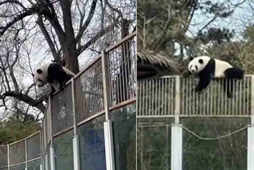 ചൈനയിലെ ബെയ്ജിങ് മൃഗശാലയിലാണ് കൗതുകകരമായ ഈ സംഭവം നടന്നത്. മെങ് ലാൻ എന്നാണ് കുറുമ്പനായ ഈ പാണ്ടയുടെ പേര്. മൃഗശാലയിലെത്തിയ സന്ദർശകർ നോക്കി നിൽക്കെയാണ് പാണ്ട സാഹസത്തിന് മുതിർന്നത്. 6 വയസുകാരൻ മെങ് ലാൻ ഇരുമ്പ് വേലിക്കെട്ടിന് മുകളിലൂടെ കയറിയാണ് പുറത്തേക്ക് കടക്കാൻ ശ്രമിച്ചത്. പിന്നീട് ഭക്ഷണം നൽകാമെന്ന് പറഞ്ഞാണ് പാണ്ടയെ ഈ സാഹസത്തിൽ നിന്ന് പിന്തിരിപ്പിച്ചത്.
