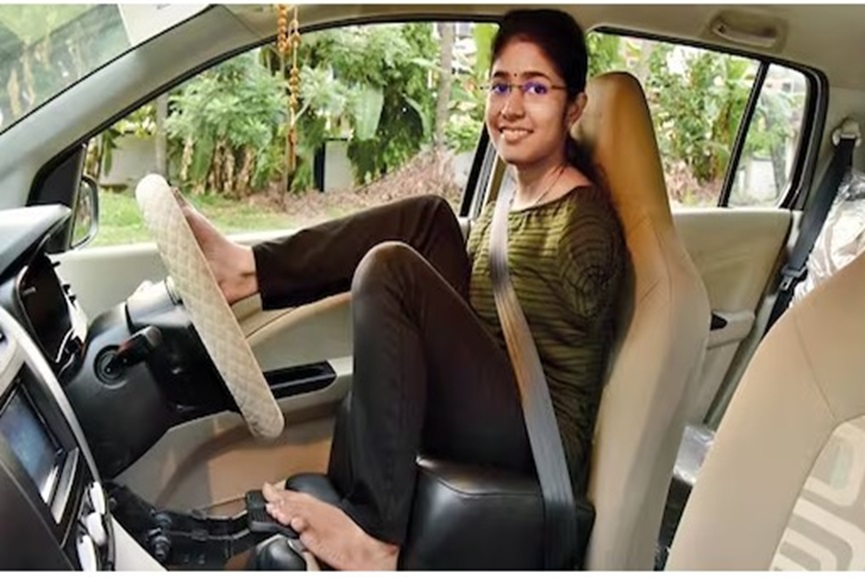പാലക്കാട്: കൈകളില്ലെങ്കിലും കാലുകൾ ഉപയോഗിച്ച് ചരിത്രത്തിലേക്ക് വണ്ടിയോടിച്ചു കയറുകയാണ് ഇടുക്കിക്കാരിയായ ജിലുമോൾ. കാലുകൾ ഉപയോഗിച്ച് ഡ്രൈവിങ് നടത്തുന്ന ജിലുമോൾക്ക് മുഖ്യമന്ത്രി പിണറായി വിജയൻ ലൈസൻസ് കൈമാറി. ആറ് വർഷത്തെ പോരാട്ടത്തിനൊടുവിൽ, സംസ്ഥാന ഭിന്നശേഷി കമ്മീഷന്റെ ഇടപെടലിനെ തുടർന്നാണ് ജിലുമോൾക്ക് ഡ്രൈവിങ് ലൈസൻസ് ലഭിച്ചത്.