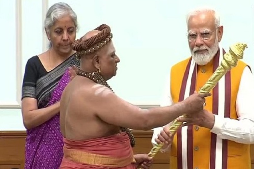 ന്യൂഡെൽഹി: പുതിയ പാർലമെന്റ് മന്ദിരത്തിന്റെ ഉൽഘാടനത്തിന് മുന്നോടിയായി പുതിയ സ്വർണ ചെങ്കോൽ പ്രധാനമന്ത്രി നരേന്ദ്രമോദി ഏറ്റുവാങ്ങി. പ്രധാനമന്ത്രിയുടെ ഓഫീസിൽ നടന്ന ചടങ്ങിലാണ് തമിഴ്നാട്ടിൽ നിന്നുള്ള പൂജാരിമാരുടെ സംഘം പ്രധാനമന്ത്രിക്ക് ചെങ്കോൽ കൈമാറിയത്. മുൻകൂട്ടി അറിയിക്കാതെ ആയിരുന്നു ചടങ്ങ്. ചെങ്കോൽ നാളെ കൈമാറുമെന്നായിരുന്നു വിവരം.