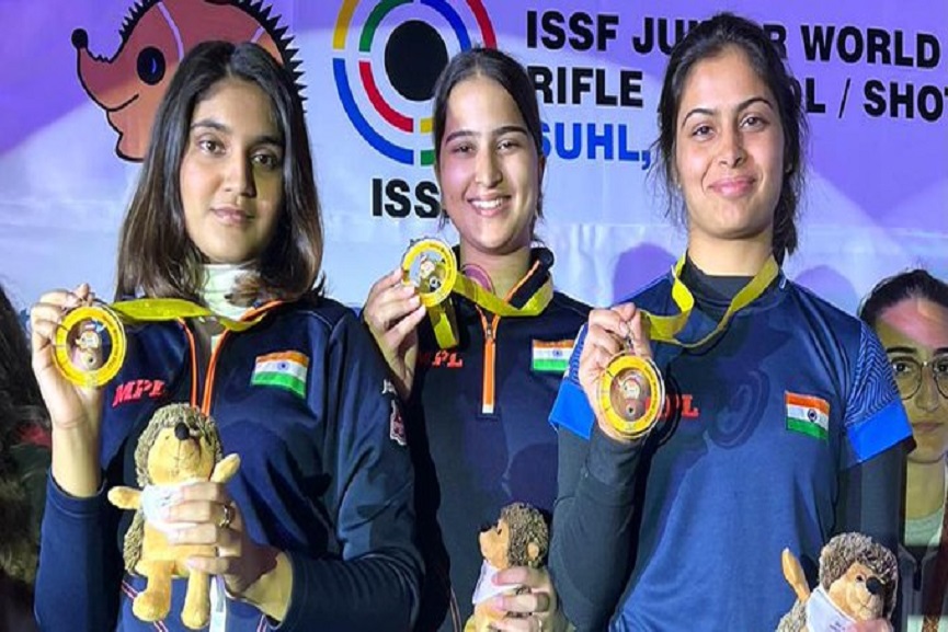 മനു ഭാകർ, എഷ സിങ്, റിതം സാങ്വാൻ എന്നിവരടങ്ങിയ ടീമാണ് ഇന്ത്യക്കായി സ്വർണം നേടിയത്. 1759 പോയിന്റോടെയാണ് ഇന്ത്യ സ്വർണക്കുതിപ്പ് തുടരുന്നത്. ചൈന വെള്ളിയും ദക്ഷിണ കൊറിയ വെങ്കലവും നേടി. യോഗ്യതാ റൗണ്ടിൽ 590 പോയിന്റ് നേടിയ മനു ഭാകറും 586 പോയിന്റ് നേടിയ എഷയും വ്യക്തിഗത വിഭാഗത്തിൽ ഫൈനൽ യോഗ്യത നേടുകയും ചെയ്തു.