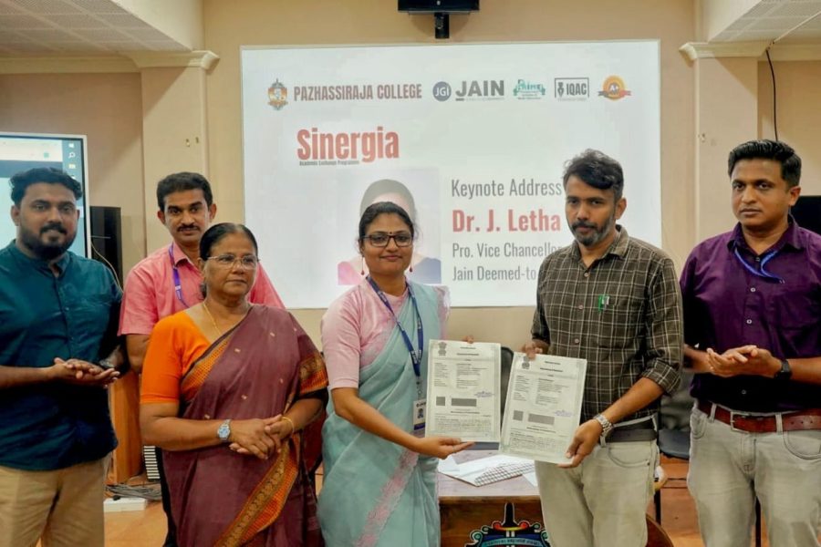 പുൽപ്പള്ളി: സിനെര്ജിയ അക്കാദമിക് എക്സ്ചേഞ്ച് പ്രോഗ്രാമിനായി പുല്പ്പള്ളി പഴശ്ശിരാജ കോളേജ് മാദ്ധ്യമപഠന വിഭാഗവും കൊച്ചി ജെയിന് യൂണിവേഴ്സിറ്റിയും ധാരണാപത്രം ഒപ്പുവെച്ചു. വിദ്യാർഥികളും അധ്യാപകരും തമ്മിലുള്ള സഹകരണവും അറിവ് പങ്കിടലും പ്രോൽസാഹിപ്പിക്കുകയെന്ന ലക്ഷ്യത്തോടെ വിഭാവനം ചെയ്ത പ്രോഗ്രാമാണ് സിനെര്ജിയ.