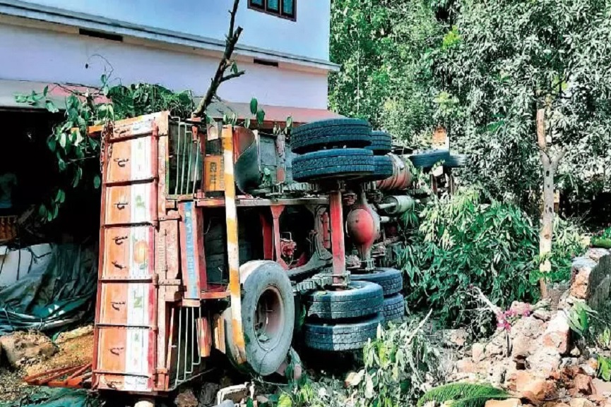 കഴിഞ്ഞ ദിവസമാണ് മിനി ഊട്ടിയില് നിന്ന് എല്ലുപൊടി കയറ്റി വരുകയായിരുന്ന ചരക്കുലോറി നിയന്ത്രണംവിട്ട് പാഞ്ഞെത്തി വീടിന്റെ മതിലും തകര്ത്ത് മറിഞ്ഞത്. വീട്ടുകാര് ഈ സമയം ബന്ധുവീട്ടിലായിരുന്നു. അതിനാല് വന് അപകടമാണ് ഒഴിവായത്. ലോറിയുടെ മുന്ഭാഗം ബെഡ്റൂമിലും പിന്ഭാഗം വരാന്തയിലുമാണ്.