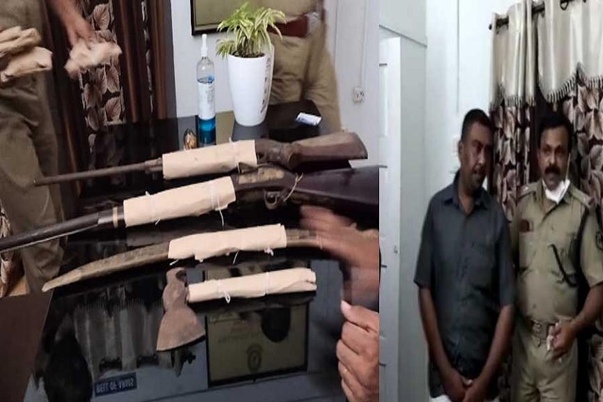 ഇയാളിൽ നിന്നും മാൻ കൊമ്പ്, വാൾ, മഴു, നാടൻ തോക്ക്, എയർ ഗൺ എന്നിവ പോലീസ് പിടികൂടി.