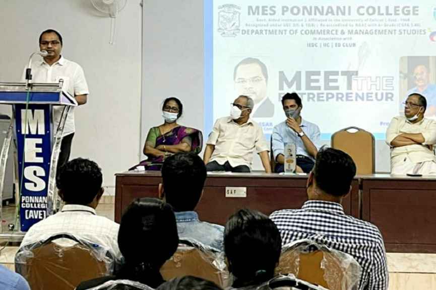 കൊമേഴ്സ് വകുപ്പ് തലവനും അസിസ്റ്റൻന്റ് പ്രൊഫസറുമായ ഡോ. സിജിവർഗീസ് സ്വാഗതം പറഞ്ഞ ‘മീറ്റ് ദി എന്റർപ്രണർ’ പരിപാടിയിൽ കോളേജ് പ്രിൻസിപ്പൾ ഡോ. അജിംസ് പി മുഹമ്മദ് അധ്യക്ഷ പ്രസംഗം നിർവഹിച്ചു. എംഇഎസ് ജനറൽ സെക്രട്ടറി പ്രൊഫസർ കടവനാട് മൊഹമ്മദ് ഉൽഘാടന പ്രസംഗം നിർവഹിച്ച ചടങ്ങിൽ കോളേജ് മാനേജ്മെന്റ് കമ്മിറ്റി സെക്രട്ടറി എംകെ മൊഹമ്മദ് റഷീദ്, സ്റ്റാഫ് ക്ളബ് സെക്രട്ടറി ഡോ. എആർ സിന എന്നിവർ നന്ദിയും പറഞ്ഞു.