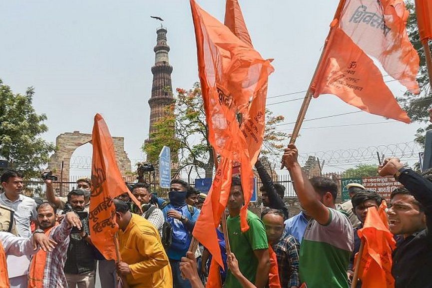ന്യൂഡെൽഹി: ചരിത്രപ്രസിദ്ധമായ കുത്തബ് മിനാറിന്റെ പേര് വിഷ്ണു സ്തംഭ് എന്ന് മാറ്റണമെന്ന ആവശ്യവുമായി പ്രതിഷേധം നടത്തിയ ഹിന്ദു സംഘടനാ പ്രവർത്തകരെ പോലീസ് അറസ്റ്റ് ചെയ്തു നീക്കി. പ്രദേശത്ത് തമ്പടിച്ച ഹിന്ദു സംഘടനാ പ്രവർത്തകർ ഹനുമാൻ ചാലിസ ചൊല്ലി കാവി പതാകയും പ്ളക്കാർഡുകളുമേന്തി മിനാറിനു സമീപത്തേക്ക് എത്തിയെങ്കിലും പോലീസ് തടയുകയായിരുന്നു. യുണൈറ്റഡ് ഹിന്ദു ഫ്രണ്ട് വർക്കിങ് പ്രസിഡണ്ട് ഭഗ്വാൻ ഗോയലിന്റെ നേതൃത്വത്തിലായിരുന്നു പ്രതിഷേധം.