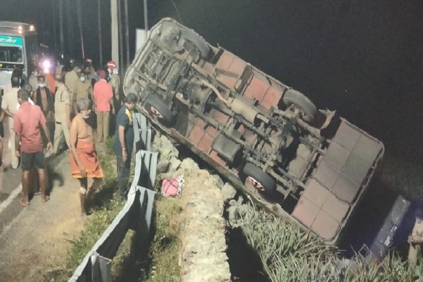പത്തനംതിട്ട: ശബരിമല ദർശനം കഴിഞ്ഞ് മടങ്ങിയ തീർഥാടകർ സഞ്ചരിച്ച മിനിബസ് നിയന്ത്രണം വിട്ട് മറിഞ്ഞു. തമിഴ്നാട്ടിൽ നിന്നുള്ള ഭക്തരായിരുന്നു ബസിൽ ഉണ്ടായിരുന്നത്. ഇന്ന് പുലർച്ചെ 3.30ന് ളാഹ വലിയ വളവിലായിരുന്നു അപകടം. 15 പേരാണ് വാഹനത്തിൽ ഉണ്ടായിരുന്നത്. 10 പേർക്ക് പരിക്കേറ്റു. 3 പേരെ കോട്ടയം മെഡിക്കൽ കോളേജിലും 7 പേരെ പത്തനംതിട്ട ജനറൽ ആശുപത്രിയിലും പ്രവേശിപ്പിച്ചു. ഇവരുടെ ആരോഗ്യനില തൃപ്തികരമാണെന്നാണ് വിവരം.