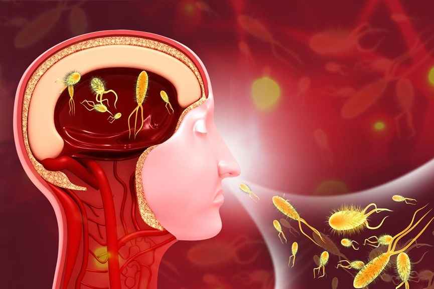 ചെളി നിറഞ്ഞ ജലാശയങ്ങളിൽ കണ്ടുവരുന്ന നെയ്‌ഗ്‌ളേറിയ ഫൗളറി മനുഷ്യർ മുങ്ങിക്കുളിക്കുമ്പോൾ മൂക്കിലൂടെ ശിരസിൽ എത്തി തലച്ചോറിൽ അണുബാധ ഉണ്ടാക്കുന്നതാണ് രോഗം മാരകമാക്കുന്നത്. ശുദ്ധജലത്തിലും ഇവയുടെ സാന്നിധ്യം ഉണ്ടാകുമെന്നതിനാൽ സ്വിമ്മിങ് പൂളുകൾ, കുളങ്ങൾ എന്നിവിടങ്ങളിലും കാണാം.