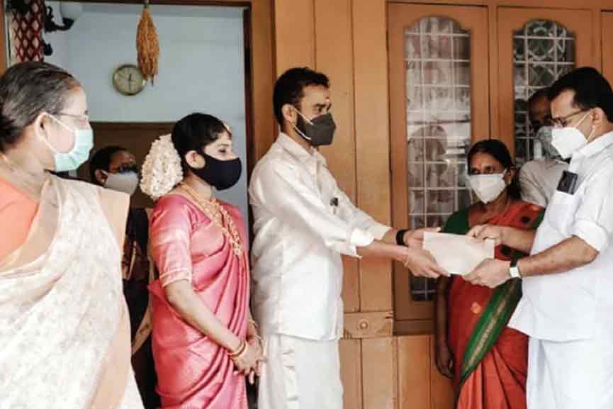 കോവിഡ് കാലത്ത് വിവാഹ ചിലവ് ചുരുങ്ങിയതോടെയാണ് അരുൺ, തുകയുടെ വിഹിതമായ 10,000 രൂപ വെള്ളൂര് പഞ്ചായത്തിന്റെ നേതൃത്വത്തില് കോവിഡ് രോഗികളെ പരിപാലിക്കുന്ന ഡൊമിസിലറി കെയര് സെന്ററിന്റെ പ്രവര്ത്തനങ്ങള്ക്കായി നൽകാൻ തീരുമാനിച്ചത്.