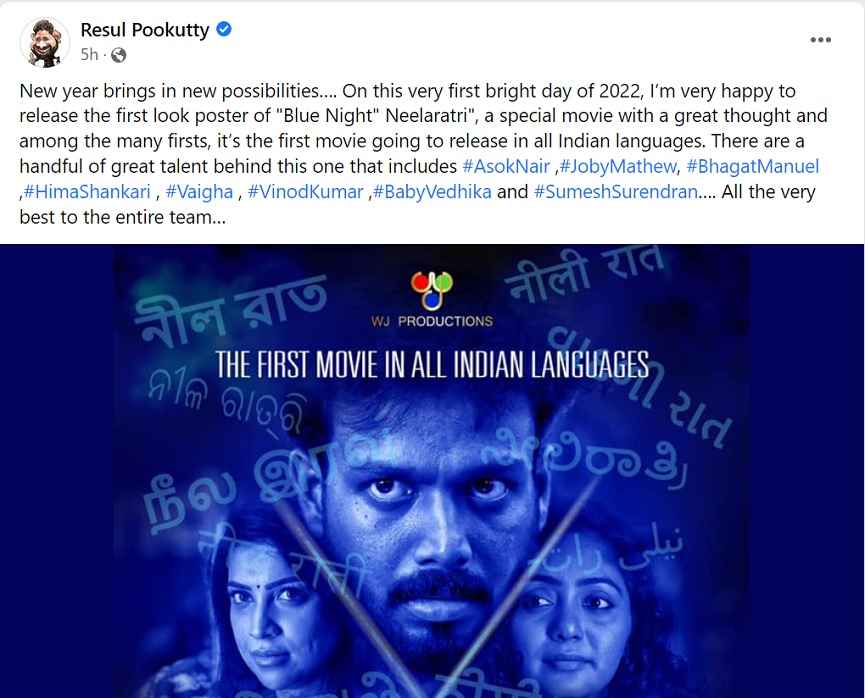 ഓസ്കാർ ജേതാവ് റസൂൽ പൂക്കുട്ടിയാണ് ഫസ്റ്റ് ലുക്ക് പോസ്റ്റർ സമൂഹ മാദ്ധ്യമങ്ങളിലൂടെ പുറത്തുവിട്ടത്.