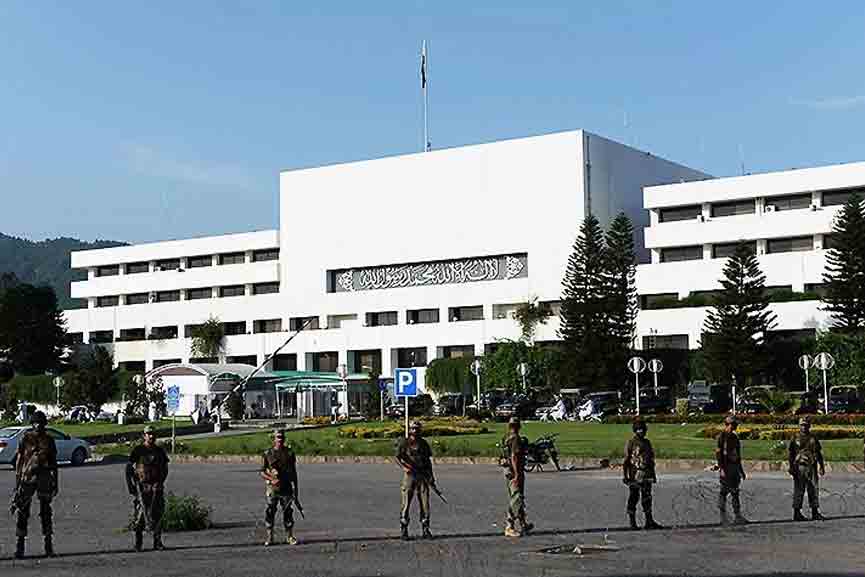 ഇസ്ലാമാബാദ്: പാകിസ്ഥാൻ പ്രധാനമന്ത്രി ഇമ്രാൻ ഖാനെതിരെ പ്രതിപക്ഷം കൊണ്ടുവന്ന അവിശ്വാസ പ്രമേയത്തിൽ ഇന്ന് വോട്ടെടുപ്പ് നടക്കാനിരിക്കെ ഇസ്ലാമാബാദിൽ നിരോധനാജ്ഞ പ്രഖ്യാപിച്ചു. സംഘർഷ സാധ്യത കണക്കിലെടുത്താണ് നടപടി. അഞ്ചോ അതിലധികമോ ആളുകളുടെ എല്ലാ തരത്തിലുമുള്ള ഒത്തുചേരലുകള്, ഘോഷയാത്രകള്, റാലികള്, പ്രകടനങ്ങള് എന്നിവ നിരോധിച്ചുകൊണ്ട് ഇസ്ലാമാബാദിലെ ജില്ലാ മജിസ്ട്രേറ്റ് ഉത്തരവിറക്കി. ഇസ്ലാമാബാദിലെ ദേശീയ അസംബ്ളിക്ക് പുറത്തും സുരക്ഷ ശക്തമാക്കിയിട്ടുണ്ട്.