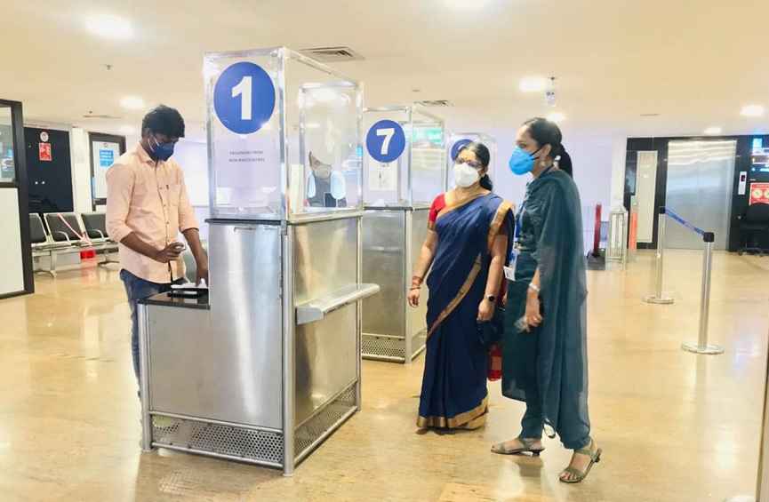 എയര്പോര്ട്ടുകളില് യാത്രക്കാരുടെ ആര്ടിപിസിആര് പരിശോധനക്കും ആരോഗ്യ നില വിലയിരുത്തുന്നതിനും കിയോസ്കുകള് സ്ഥാപിച്ചിട്ടുണ്ട്. യാത്രക്കാരുടെ എണ്ണത്തിനനുസരിച്ച് എയര്പോര്ട്ടുകളില് 5 മുതല് 10 വരെ കിയോസ്കുകള് ഒരുക്കുന്നതാണ്.