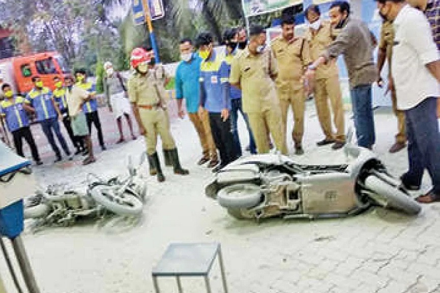 ബൈക്കിൽ പെട്രോൾ അടിച്ച ശേഷം തുക വാങ്ങുന്നതിനായി കാത്തുനിൽക്കവേ പിറകിൽ വന്ന വിശാഖിന്റെ ബൈക്കിൽ നിന്നുണ്ടായ തീപ്പൊരിയിൽ നിന്ന് ഹാരിസിന്റെ ബൈക്കിന് തീ പിടിക്കുകയായിരുന്നു എന്ന് ദൃക്‌സാക്ഷികൾ പറയുന്നു. എന്നാൽ, ഹാരിസ് പൊള്ളലേൽക്കാതെ രക്ഷപെട്ടു. വിശാഖിനെ കോഴിക്കോട് മെഡിക്കൽ കോളേജ് ആശുപത്രിയിൽ പ്രവേശിപ്പിച്ചു.