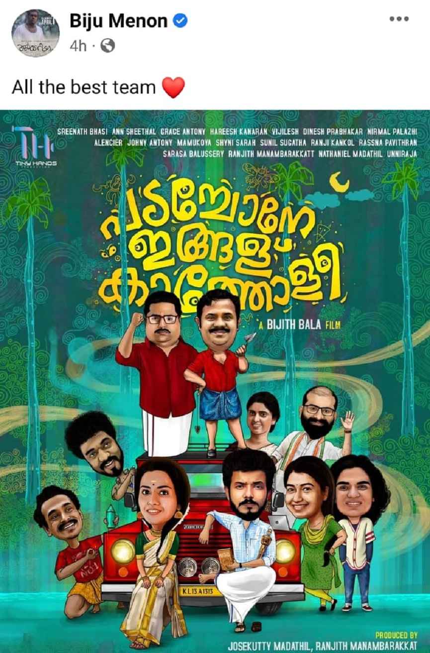 സിനിമാ താരങ്ങളായ ബിജു മേനോൻ, ജയസൂര്യ, ഇന്ദ്രൻസ്, ജോണി ആന്റണി, സണ്ണി വെയ്ൻ, ഉണ്ണി മുകുന്ദൻ, രമേശ് പിഷാരടി, രഞ്ജി പണിക്കർ, ഗ്രേസ് ആന്റണി, സുരഭി ലക്ഷ്മി, അനന്യ, സ്വാസിക, സിജാ റോസ്, നിരഞ്ജന, അനു സിത്താര തുടങ്ങിവയവരാണ് സമൂഹ മാദ്ധ്യമങ്ങളിലൂടെ പോസ്റ്റർ റിലീസ് ചെയ്തത്.
